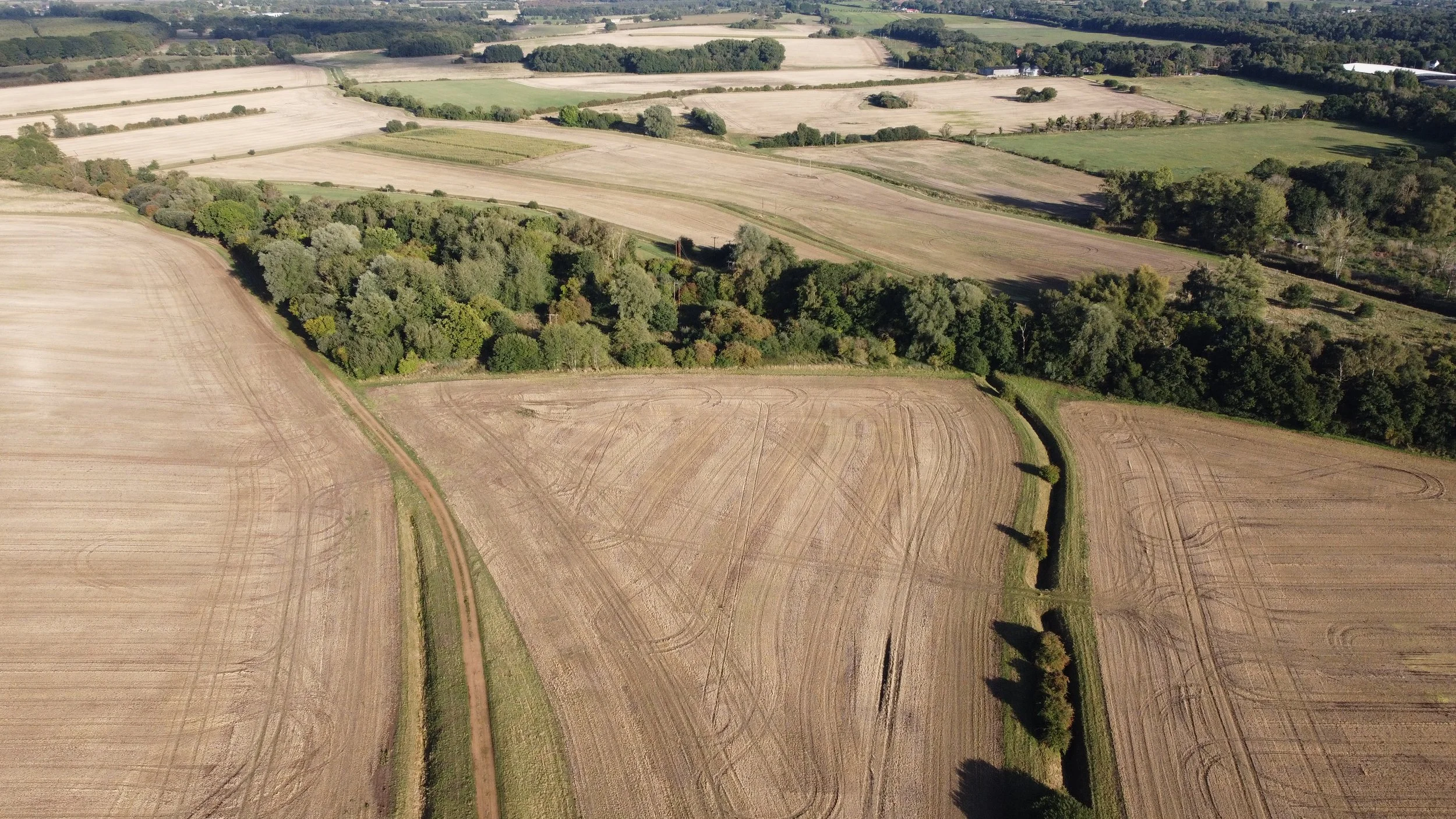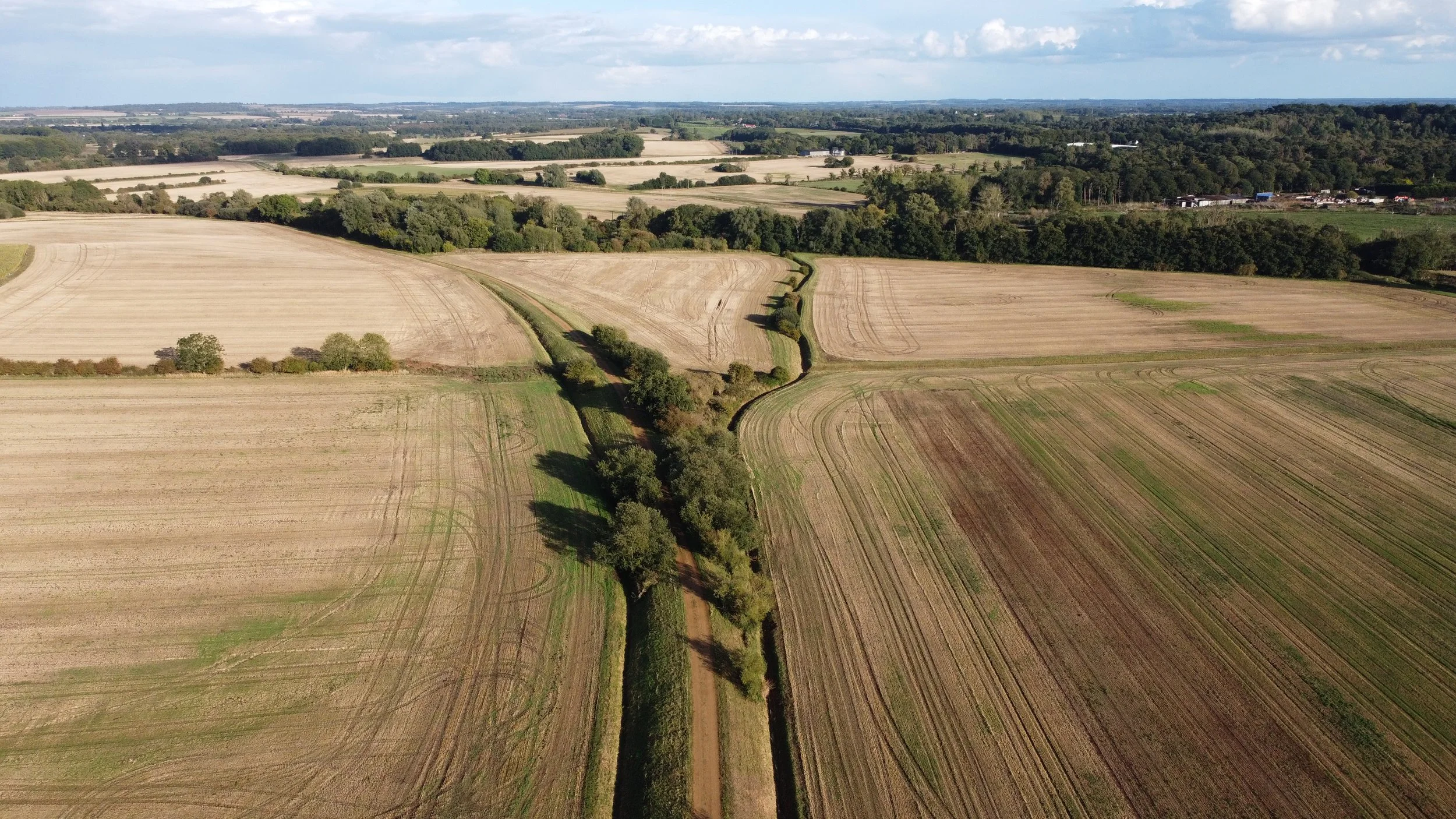 Aerial view of the old tree line that traces where the former Lynn avoiding line left Gayton Road and headed towards South Lynn.