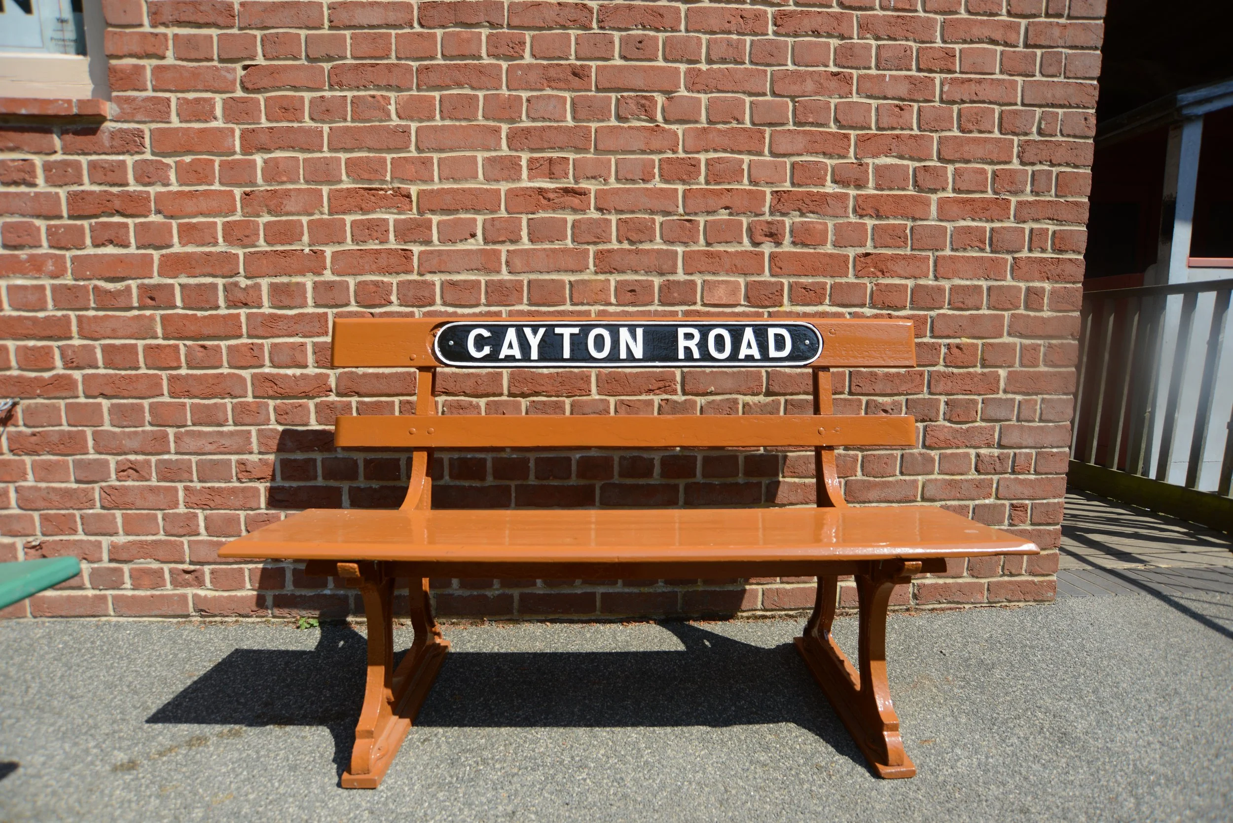 At Holt, this old bench from Gayton Road sits on the North Norfolk Railway.