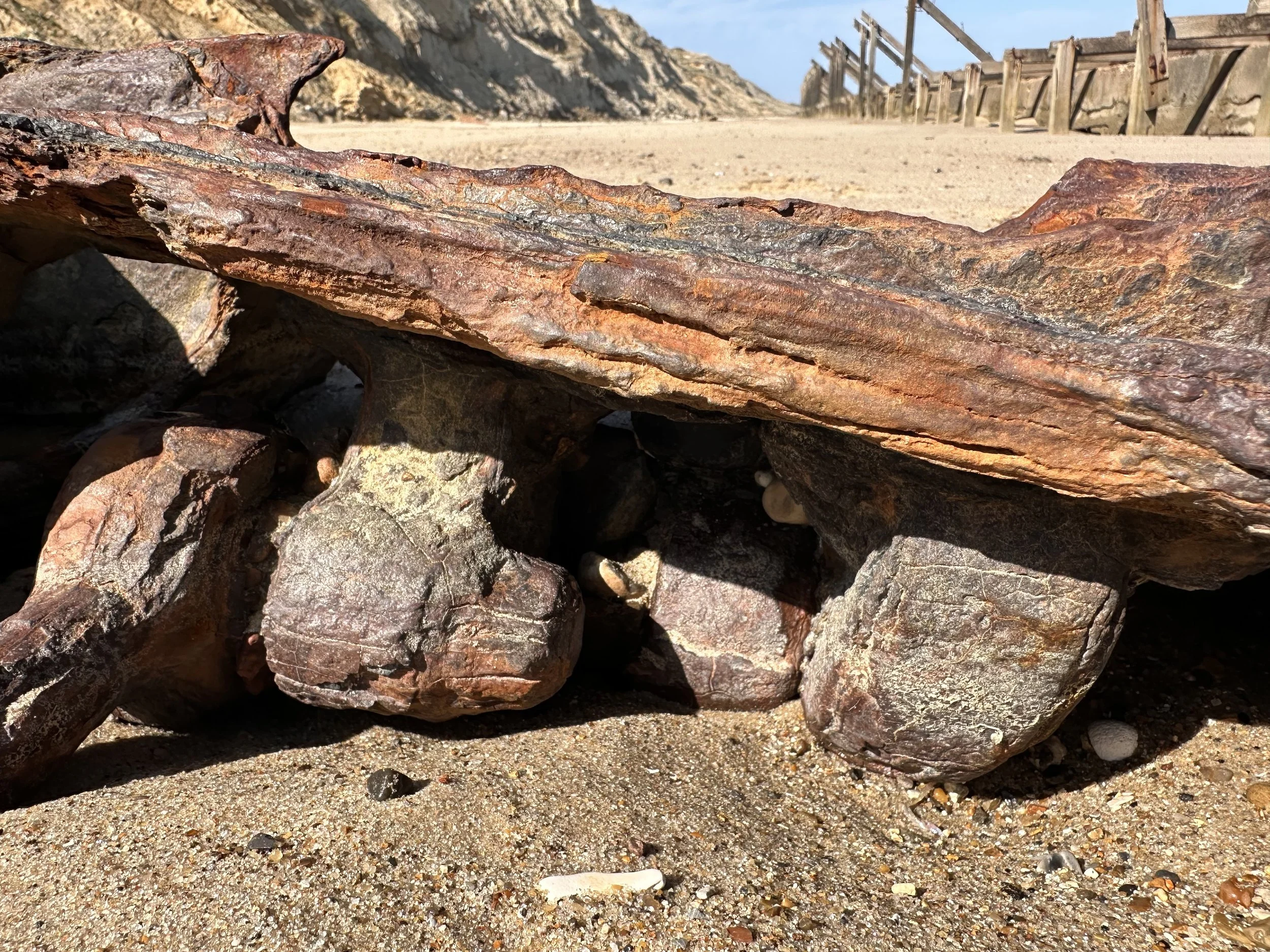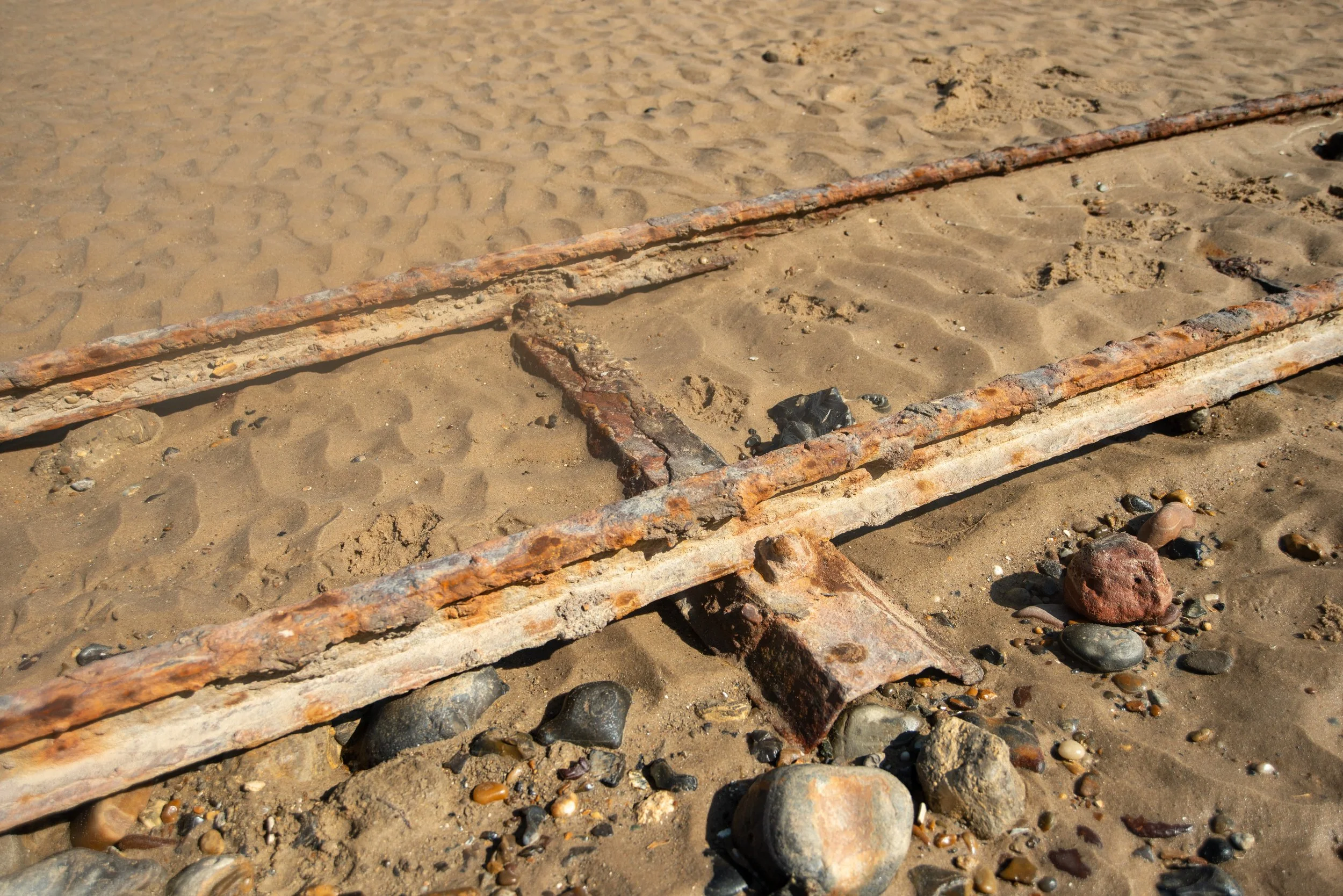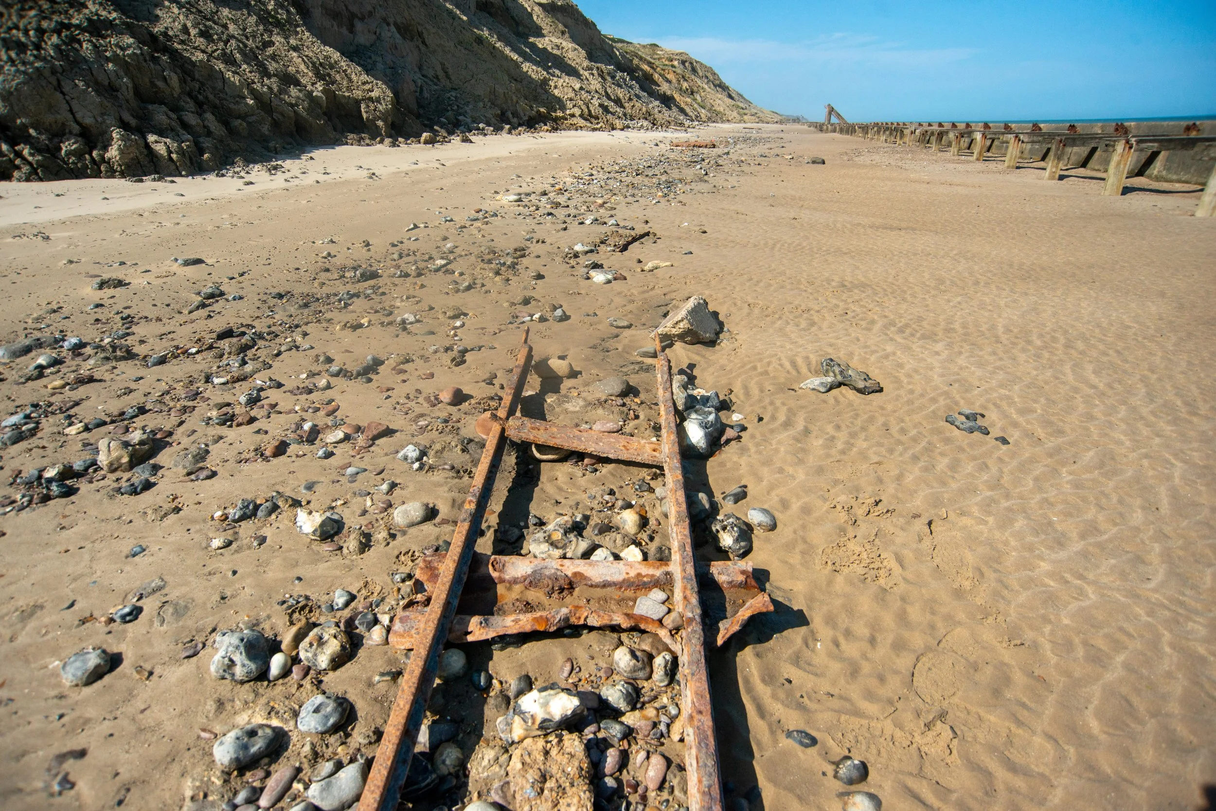 It's apparent that these railway remains are situated on a beach close to the cliffs. It's uncertain how long they'll remain visible before being covered by a cliff fall or tidal surge. If you're interested in visiting, it's best to do so sooner rather than later.